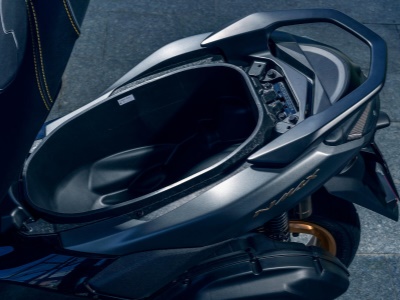 Nechybí ani velkorysý podsedlový úložný prostor na helmu a dvě přední schránky, z nichž jedna má USB-C nabíječku. Celé osvětlení je LED, včetně integrovaných blinkrů a moderního zadního světla s horizontálními světelnými pásy.
