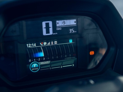 Volba režimu se provádí pomocí levého ovladače na řídítkách, přičemž skútr si po vypnutí pamatuje poslední nastavení. Nová funkce Downshift umožňuje silnější zrychlení nebo větší brzdný účinek motoru při zpomalování, čímž přináší do řízení sportovní pocit známý z motocyklů s převodovkou.